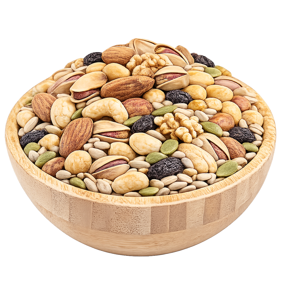 تضم الخلطة كاجو، فستق، بندق، لوز، وفول سوداني و زبيب أسود و ذهبي و لب أبيض و سوري، مختارة بعناية لتكون مناسبة للتسالي اليومية، الضيافة، ولمّات العائلة، مع تنوع يرضي كل الأذواق.